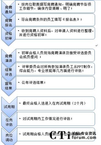 如何進(jìn)行內(nèi)部選拔 為營造公開、公平、公正的內(nèi)部人才選拔環(huán)境,使符合條件的員工均有參與的機會和權(quán)利,內(nèi)部選拔人才一般采用競聘模式。下圖為參考流程: