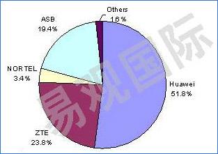 圖:中國(guó)NGN市場(chǎng)各設(shè)備廠商市場(chǎng)份額