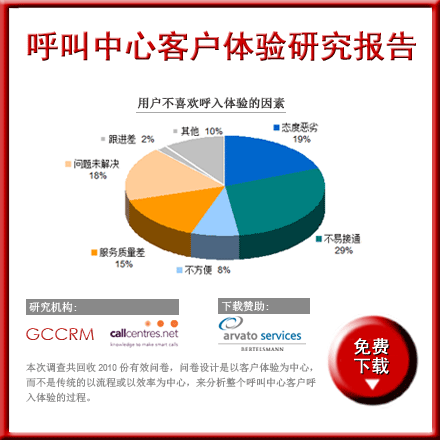 隨著呼叫中心服務(wù)在中國市場的蓬勃發(fā)展,每個人也都直接或間接的以某種形式成為呼叫中心的使用者,而這些呼叫中心服務(wù)提供商所提供的服務(wù)體驗對其品牌的塑造至關(guān)重要。為更好了解呼叫中心用戶的客戶體驗,從而有助于改善并優(yōu)化用戶的呼叫中心體驗,我們組織了“呼叫中心客戶體驗調(diào)查——中國大陸”,本次調(diào)查由澳大利亞的callcentres.net 和GCCRM共同組織,旨在以自然時間為序,從體驗為中心的角度展現(xiàn)呼叫中心的客戶體驗,而非傳統(tǒng)的以流程或效率為中心。