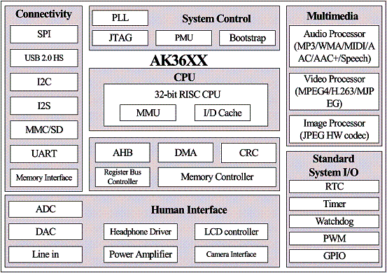 AK36系列PND方案的硬件架構(gòu)由AK36系列外接GPS模塊或芯片組組成,搭配MLC Nandflash海量存儲(chǔ)。軟件方面采用安凱自主研發(fā)的輕量級(jí)操作系統(tǒng)實(shí)現(xiàn)系統(tǒng)和多媒體等主要功能,內(nèi)置凱立德V3.0的導(dǎo)航版本。據(jù)安凱稱,該方案具有系統(tǒng)成本低、加工簡(jiǎn)單、低功耗、平臺(tái)穩(wěn)定且開(kāi)放性好、卓越的搜星性能等優(yōu)勢(shì)。