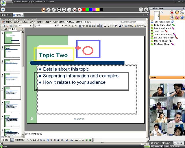 2.在多人會(huì)議的環(huán)境下,vzRoom同時(shí)支持多種實(shí)時(shí)信息分享,包括網(wǎng)頁、相片、文件、圖表和簡報(bào)等,配合內(nèi)置畫筆功能,方便解說。