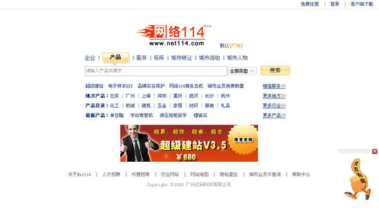 原網(wǎng)絡(luò)114 “轉(zhuǎn)讓”、“求購”、“招聘”、“應(yīng)急貼”、“商問”和“反查”等六大主打欄目不見了,取而代之的是“服務(wù)”、“場所”、“城市轉(zhuǎn)讓”、“城市活動”、“城市人物”等五欄目。據(jù)了解,第六欄目‘城市批發(fā)’由于數(shù)據(jù)整理問題,不參加公測,將被安排隨后直接上線,奧運(yùn)會帶來的巨大客流,對生活資訊黃頁的需求也隨之放大,巨大的需求也意味著生活資訊類網(wǎng)站巨大的發(fā)展機(jī)遇。7月初,谷歌把還處于測試期的生活搜索入口提到了中國首頁,與視頻、圖片、地圖等并稱谷歌中國八大重點業(yè)務(wù)之一。近日,雅虎口碑網(wǎng)也高調(diào)上線。