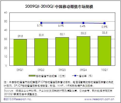電信運(yùn)營商計費政策重大調(diào)整對整個移動增值市場產(chǎn)生巨大影響力,2010Q1移動增值市場規(guī)模為33.5億,與09Q1基本持平。電信運(yùn)營商實施計費通道的強(qiáng)力治理措施,對產(chǎn)品線以WAP計費為主的企業(yè)造成嚴(yán)重生存壓力,與此同時采用短信計費的移動增值產(chǎn)品營銷也受到不同程度影響。實現(xiàn)由單一移動增值業(yè)務(wù)向移動互聯(lián)網(wǎng)服務(wù)進(jìn)行戰(zhàn)略轉(zhuǎn)型,是SP企業(yè)戰(zhàn)略發(fā)展的實踐路徑。艾瑞認(rèn)為電信運(yùn)營商實施全新的合作伙伴計費政策,將重新構(gòu)建移動增值市場秩序。