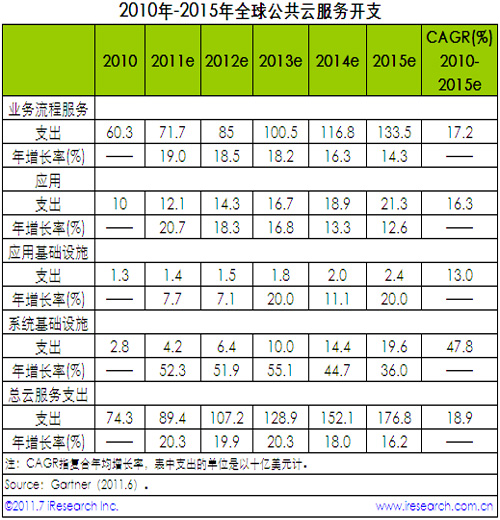 2015年全球公共云服務(wù)支出年均增長(zhǎng)率將逼近20%