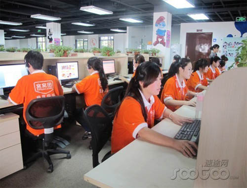 速途網(wǎng)在窩窩團(tuán)位于北美國(guó)際商務(wù)中心的呼叫中心看到,窩窩團(tuán)在線(xiàn)客服和call center以及論壇維護(hù)等部門(mén)在一層,而二層是劃分成商超、票務(wù)、親子麗人、中餐、旅游、甜品、生活?yuàn)蕵?lè)等部門(mén)的部分銷(xiāo)售團(tuán)隊(duì)。
