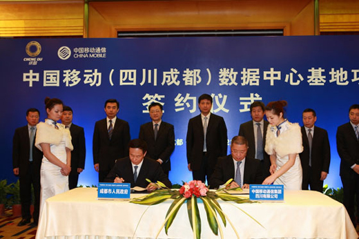 2012年2月22日,中國移動(四川成都)數據中心基地項目在四川成都正式簽約啟動。成都市政府葛紅林市長、劉超常委、白剛副市長與中國移動通信集團公司魯向東副總裁、中國移動四川公司簡勤總經理等出席簽約儀式,成都市政府與中國移動四川公司代表雙方簽署合作協(xié)議。