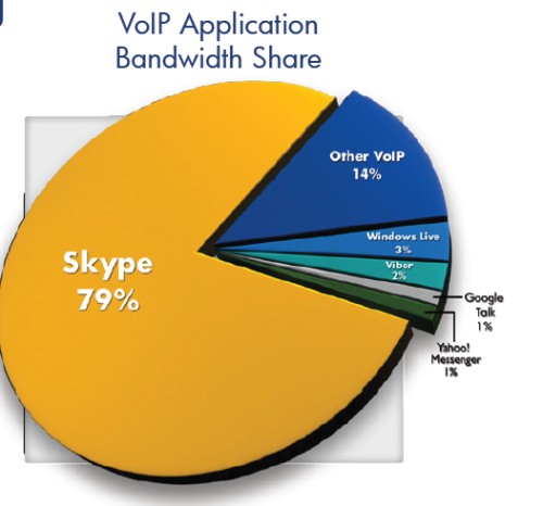 總體來(lái)看,VOIP和即時(shí)通信市場(chǎng)生機(jī)勃勃,涌現(xiàn)出很多新應(yīng)用。2011年下半年,Skype占據(jù)了全球移動(dòng)VOIP流量的79%,盡管是仍是voip市場(chǎng)的老大,但Skype的流量份額已經(jīng)比2011上半年的82%有所減少。面臨著新的進(jìn)入者如Viber、ooVoo,Tango和其他應(yīng)用的挑戰(zhàn)。