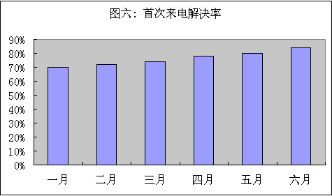 圖六反映了本例首次來(lái)電和解決率及平均解決時(shí)間。我們可以看到總體趨勢(shì)管理良性發(fā)展。