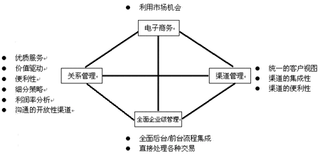 本文中,將針對國外金融企業(yè)對CRM的看法,提出一種全面的對CRM的看法,我們將從四個角度來描述,它們分別是電子商務(wù)(E-business)、渠道管理(Channel management)、關(guān)系管理(Relationships)、全面企業(yè)級管理(Management of the total enterprise),取第一個字母組合為ECRM。
