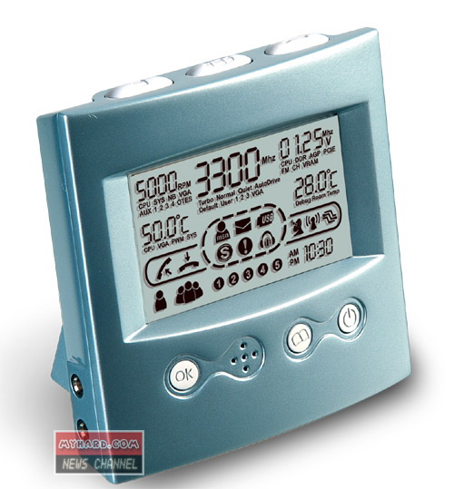 這個裝置,其實是一項早期工具的衍生產(chǎn)品。早在2004年,這個具有獨立顯示屏的小東西被開發(fā)出來,用以控制電腦的超頻設定并監(jiān)控系統(tǒng)的效能,F(xiàn)在這個在下周起于各大通路都買得到的新機種已納入Skype話務管理功能,使用者可直接把頭戴式耳機接到這個小時鐘上,one-touch輕輕一按,便可立即進行接通電話、速簡撥號及電話會議。