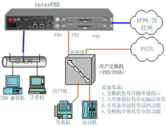 根據(jù)電話交換機的配置和功能不同,電話交換機與 interPBX設備的連接方式有二種常見方式,下面結合示意圖來具體說明。