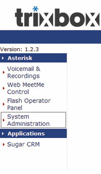 完成這些工作之后,用戶即可進入Web界面進行后期配置。使用Web瀏覽器訪問Trixbox系統(tǒng),首頁是幾個主要組件管理界面的入口,如圖3所示,其中“System