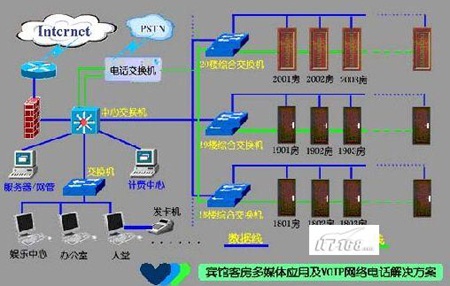 對于商旅服務行業(yè)而言,比如酒店、賓館、商務會館等,為了滿足顧客的需求,一部電視機、一部電話機是必不可少,但相比那些低檔的旅店,除了衛(wèi)生可靠、環(huán)境舒服、價格昂貴外,賓館客房的功能并沒有本質區(qū)別,然而由于行業(yè)競爭巨大,只有提升服務品質,才能吸引更多的顧客光臨。為此,很多賓館的客房里提供了寬帶上網接口,這就為部署VoIP網絡電話提供了便利條件。無疑,酒店通信系統(tǒng)的VoIP部署,從2008年開始將逐漸提升熱度,但在現(xiàn)有情況下,如何合理改裝并部署VoIP網絡電話,則成為各大酒店、賓館商務會館等商旅商業(yè)比較棘手的問題。