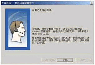 當(dāng)你15分鐘的訓(xùn)練全部結(jié)束后,將會(huì)看到如圖12所示的對(duì)話(huà)框,此時(shí)原來(lái)默認(rèn)的用戶(hù)配置文件將用剛才所收集的訓(xùn)練數(shù)據(jù)進(jìn)行更新,稍候片刻,你就會(huì)看到如圖13所示的對(duì)話(huà)框,告訴你語(yǔ)音訓(xùn)練已經(jīng)結(jié)束。