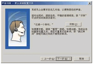 點(diǎn)擊"下一步"按鈕后,就會(huì)看到如圖11所示的對(duì)話(huà)框,請(qǐng)根據(jù)窗口中的提示對(duì)話(huà)信息朗讀,如果朗讀正確,對(duì)話(huà)信息將會(huì)反白顯示,如果你朗讀錯(cuò)誤,請(qǐng)重新進(jìn)行。